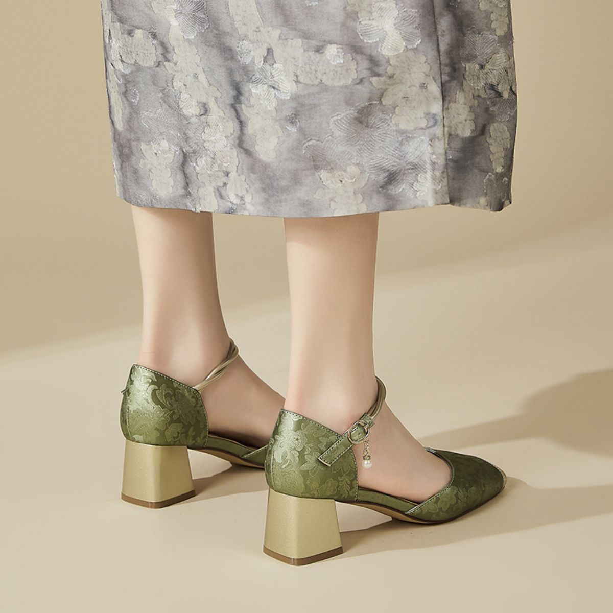 【法式一字带】气质尖头百搭简约凉鞋夏季凉鞋包头粗跟凉鞋女凉鞋 829056