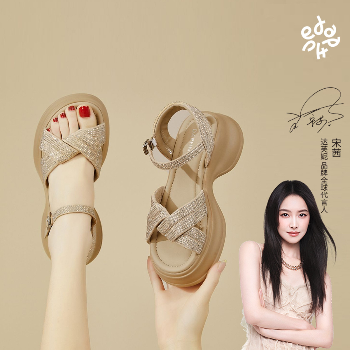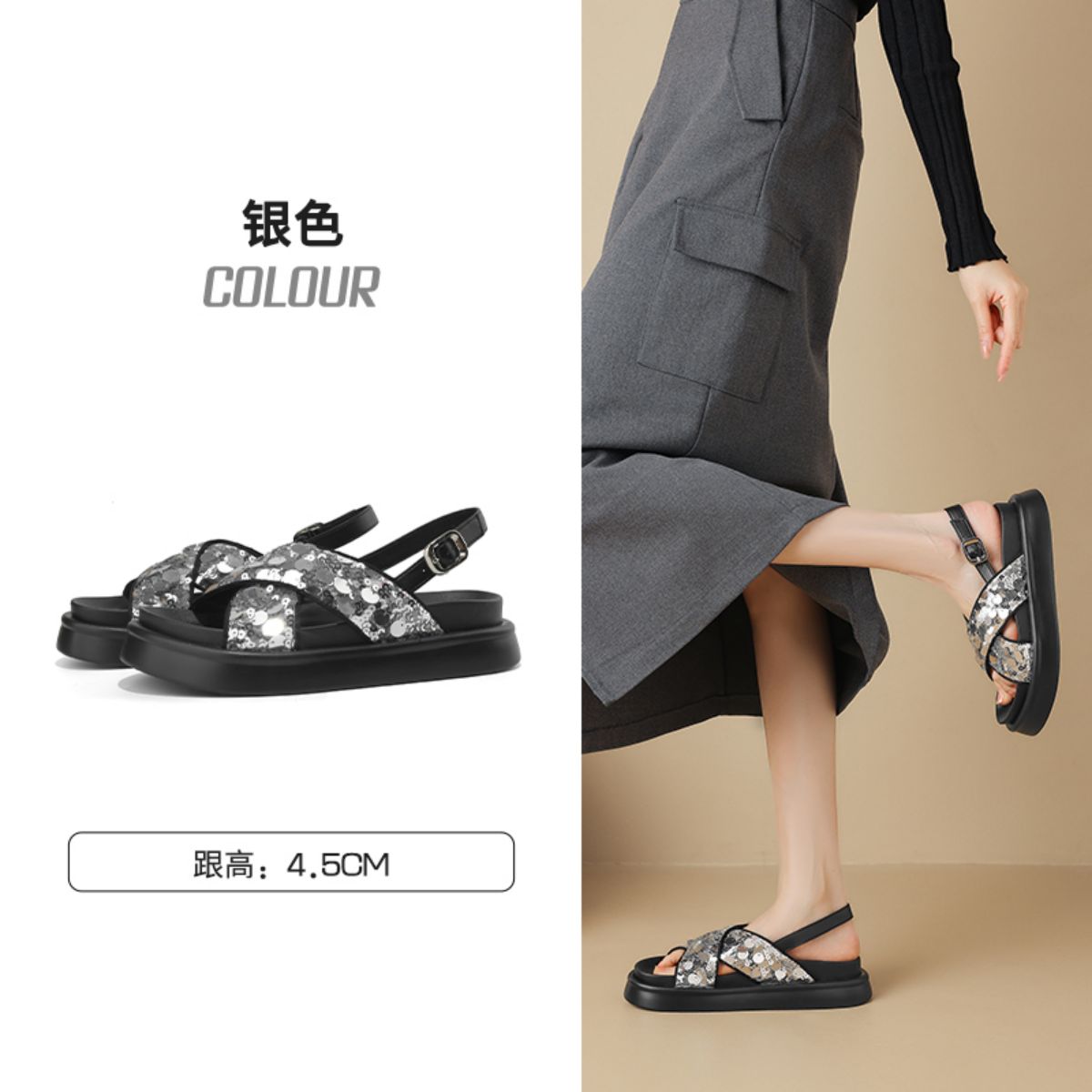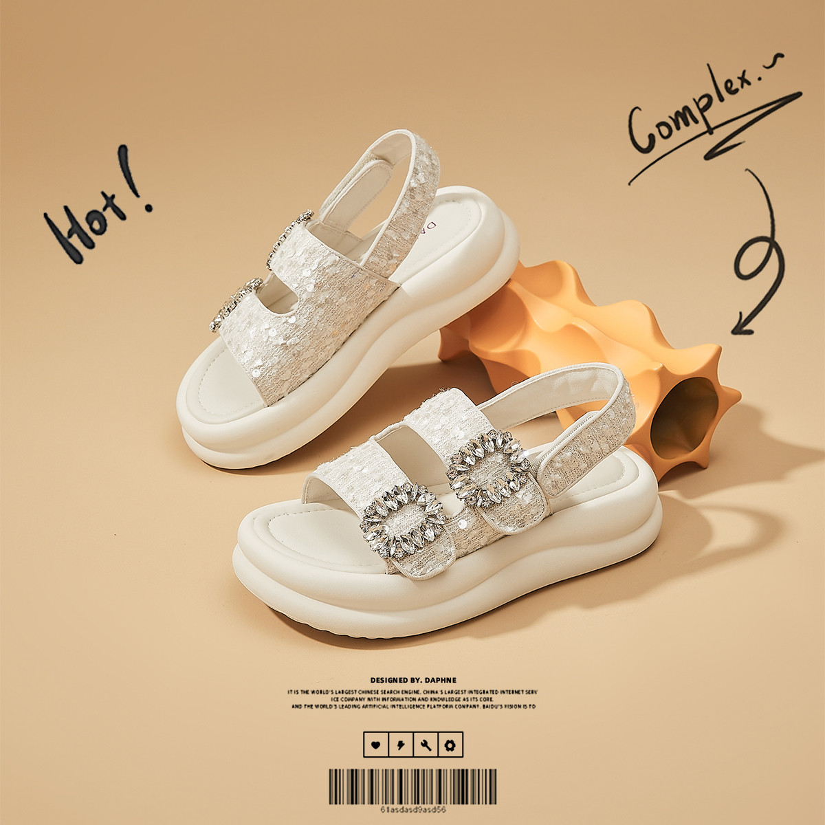 2025夏季闪耀水钻亮片设计厚底凉鞋纯色百搭透气魔术贴女鞋 077786