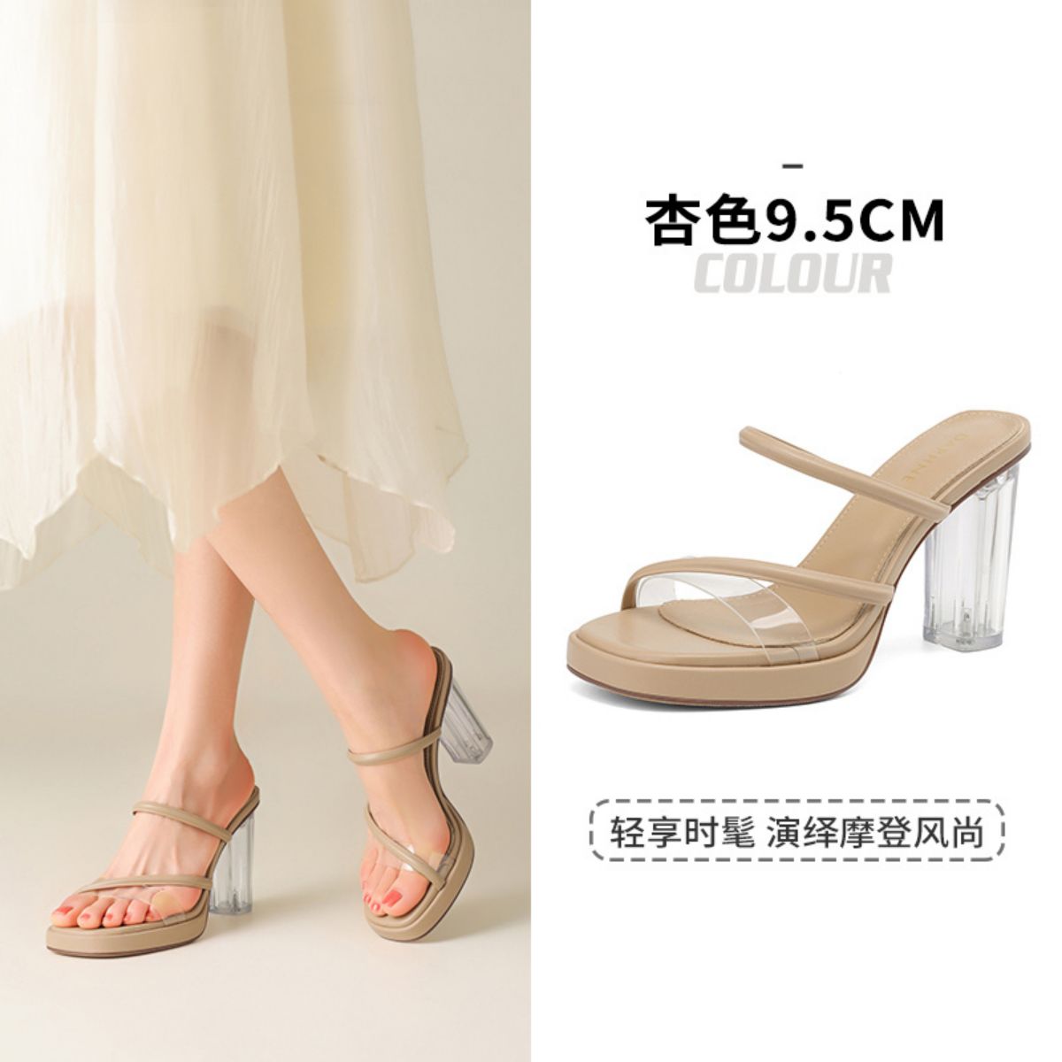 【透明一字拖】夏季女拖鞋气质高跟鞋后空凉鞋拖鞋凉拖女鞋 718167