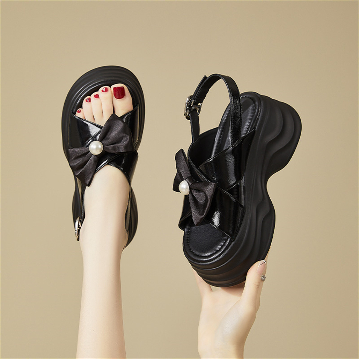 【秒增7CM】夏季蝴蝶结女凉鞋轻便透气罗马鞋厚底增高女鞋 852826