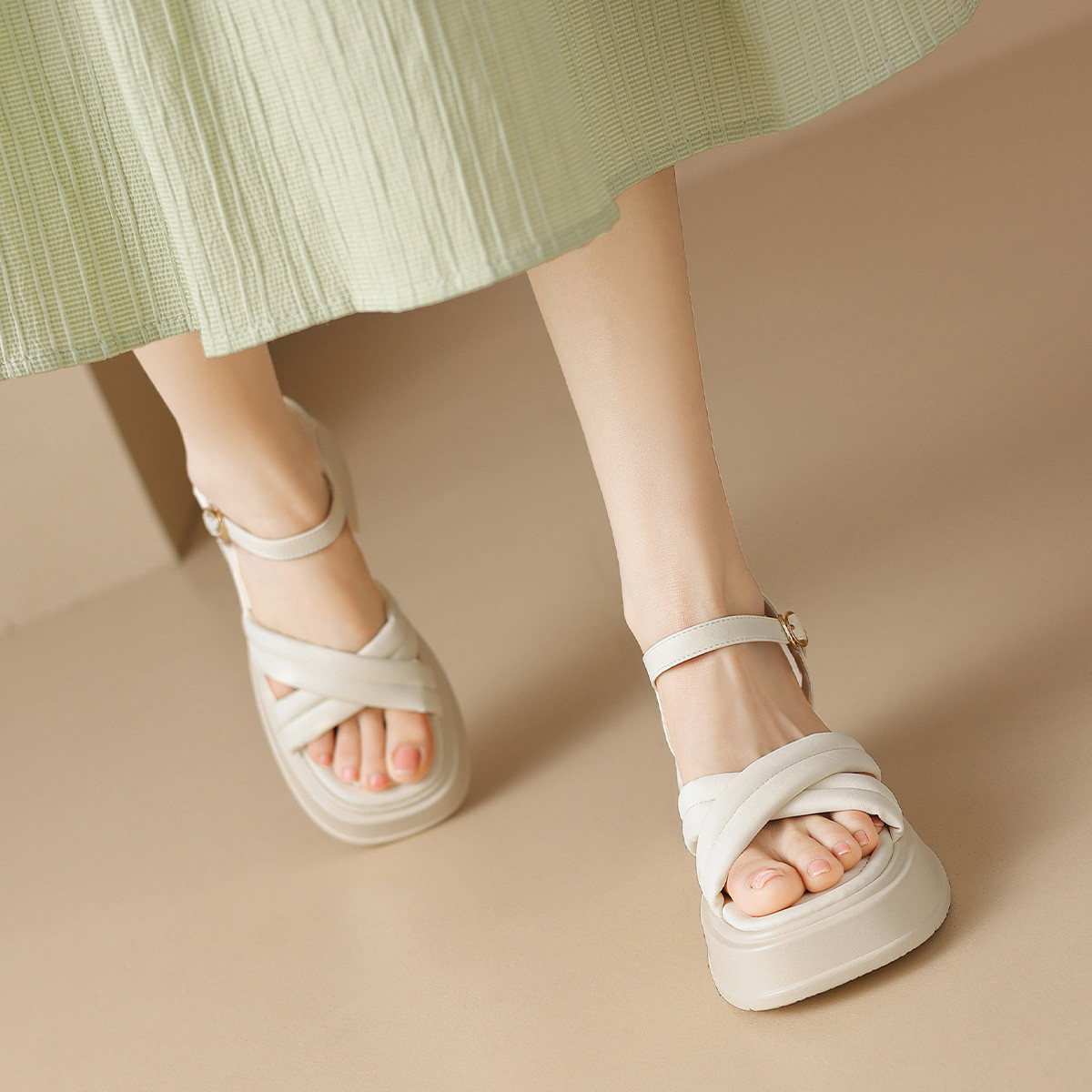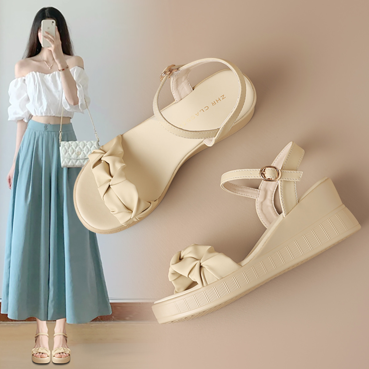 【气质纹理】百搭休闲女凉鞋厚底凉鞋夏季一字带凉鞋女轻便女凉鞋 912576