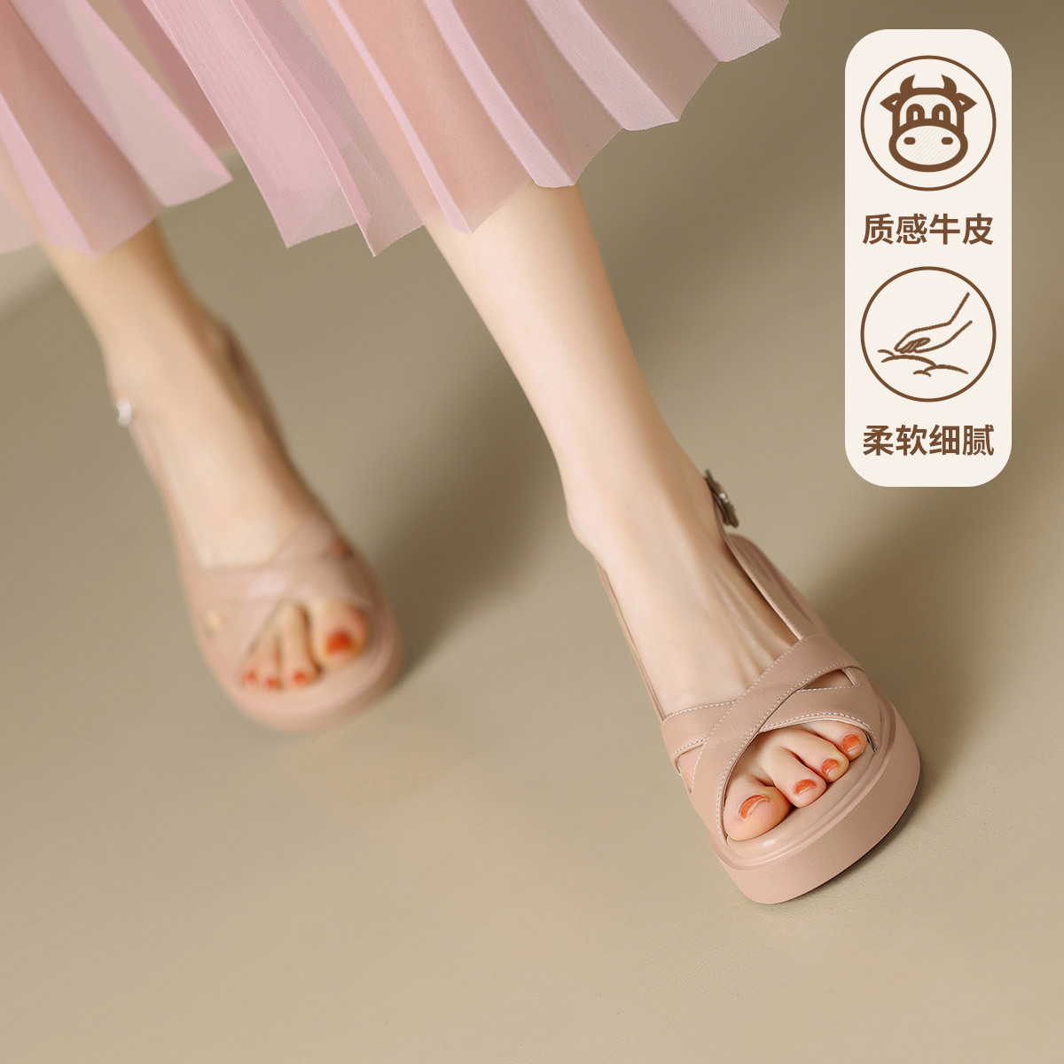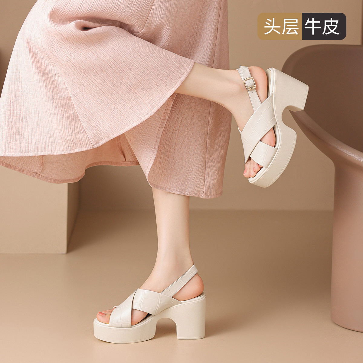 【头层牛皮】时尚交叉带凉鞋女透气高跟凉鞋后空舒适凉鞋女士夏季 213696