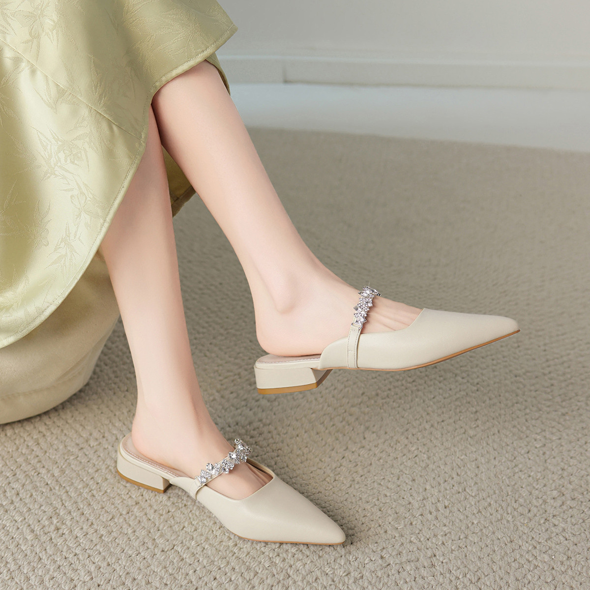 【闪耀水钻】穆勒半拖尖头拖鞋女百搭时装拖鞋女夏季外穿凉拖鞋女 197696