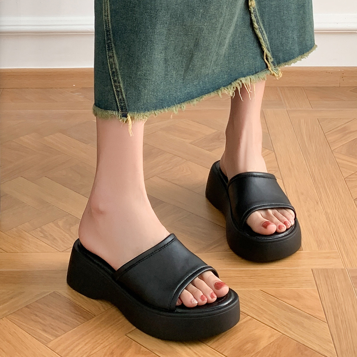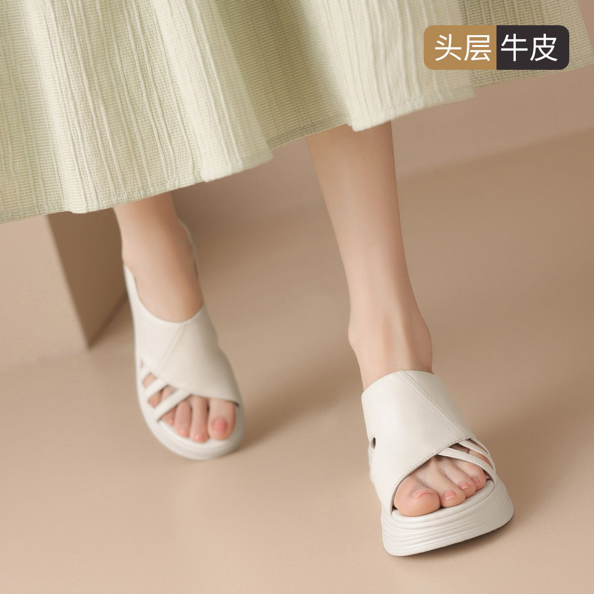 【牛剖层革】夏季厚底拖鞋外穿一脚蹬时尚女士凉拖鞋踩屎感皮拖鞋 779136