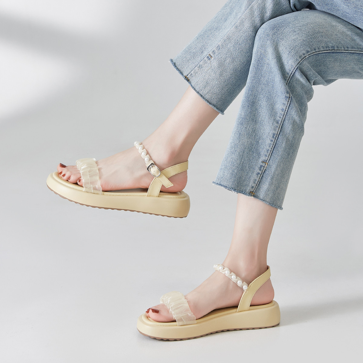 【珍珠饰扣】一字带舒适平底凉鞋女款高级感夏季凉鞋女时尚女凉鞋 964416