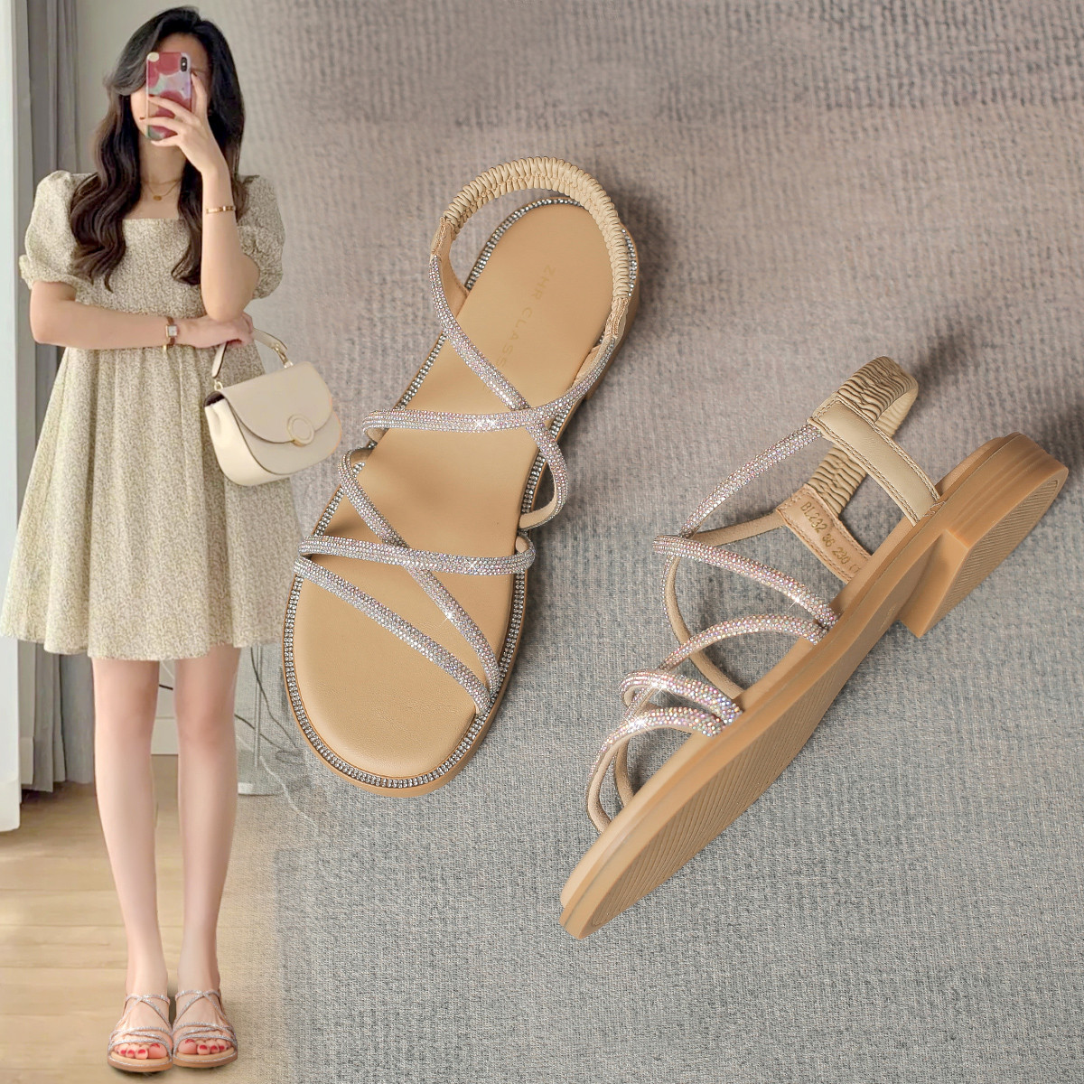 【星钻系列】百搭交叉绑带凉鞋平底凉鞋女士罗马凉鞋女夏季凉鞋女 239360