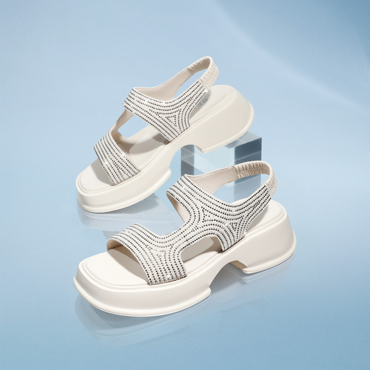 百丽休闲厚底凉鞋女春夏罗马凉鞋女松糕鞋运动凉鞋子 705178