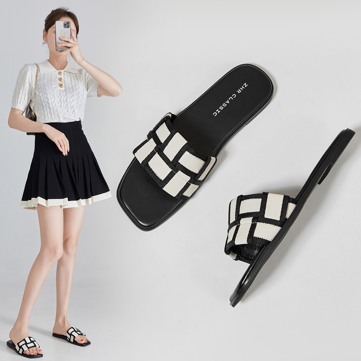 【时尚拼色】编织拖鞋女潮流一字拖女拖鞋凉拖鞋女夏季外穿拖鞋女 289600