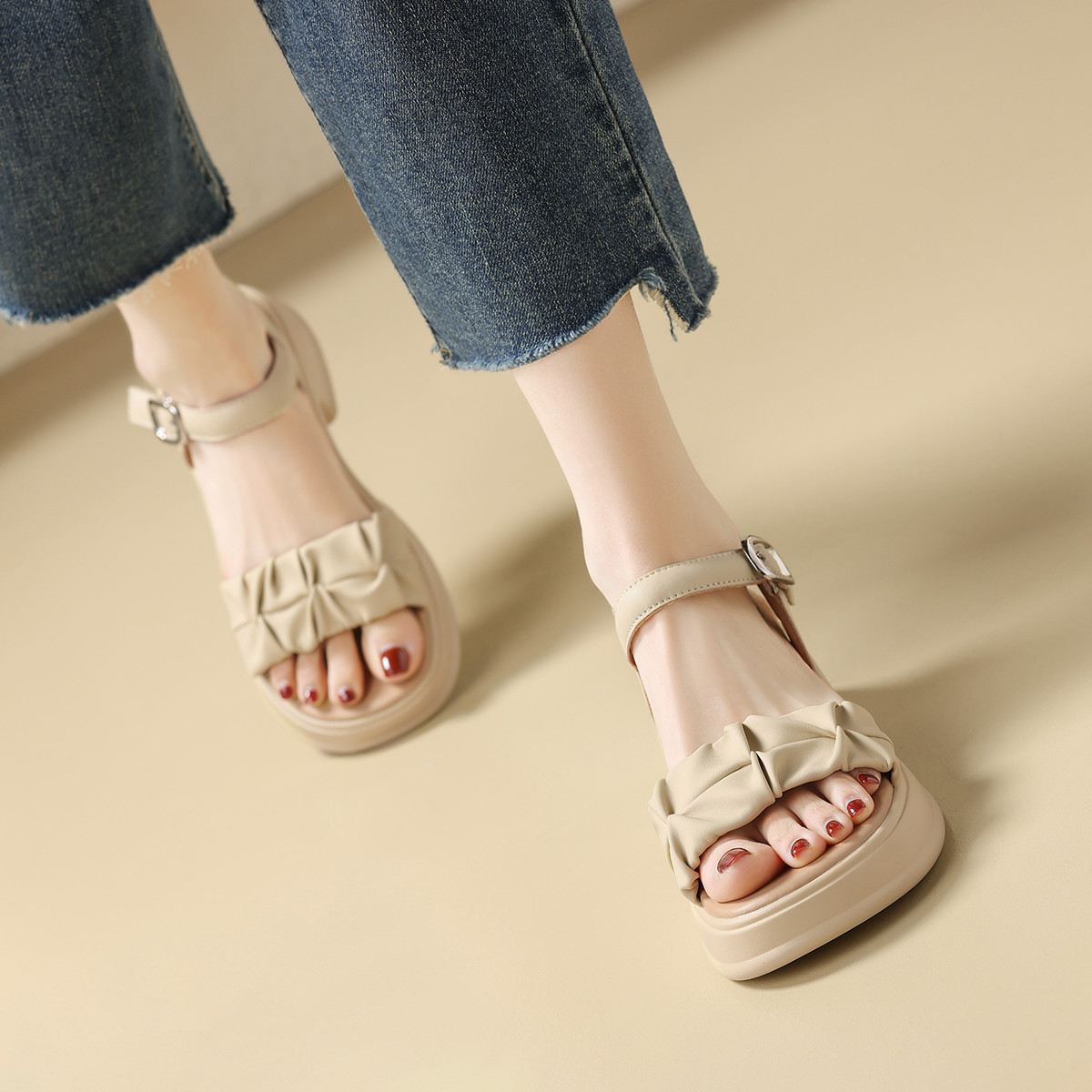 【云朵褶皱】须根凉鞋一字带女凉鞋女款高级感凉鞋女夏天女士凉鞋 718976