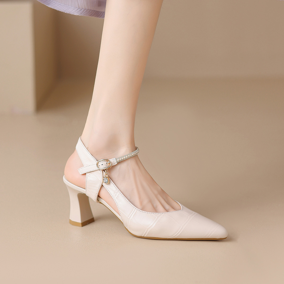 【头层牛皮】真皮女鞋包头凉鞋女款高级感高跟凉鞋子女士单鞋女夏 872000