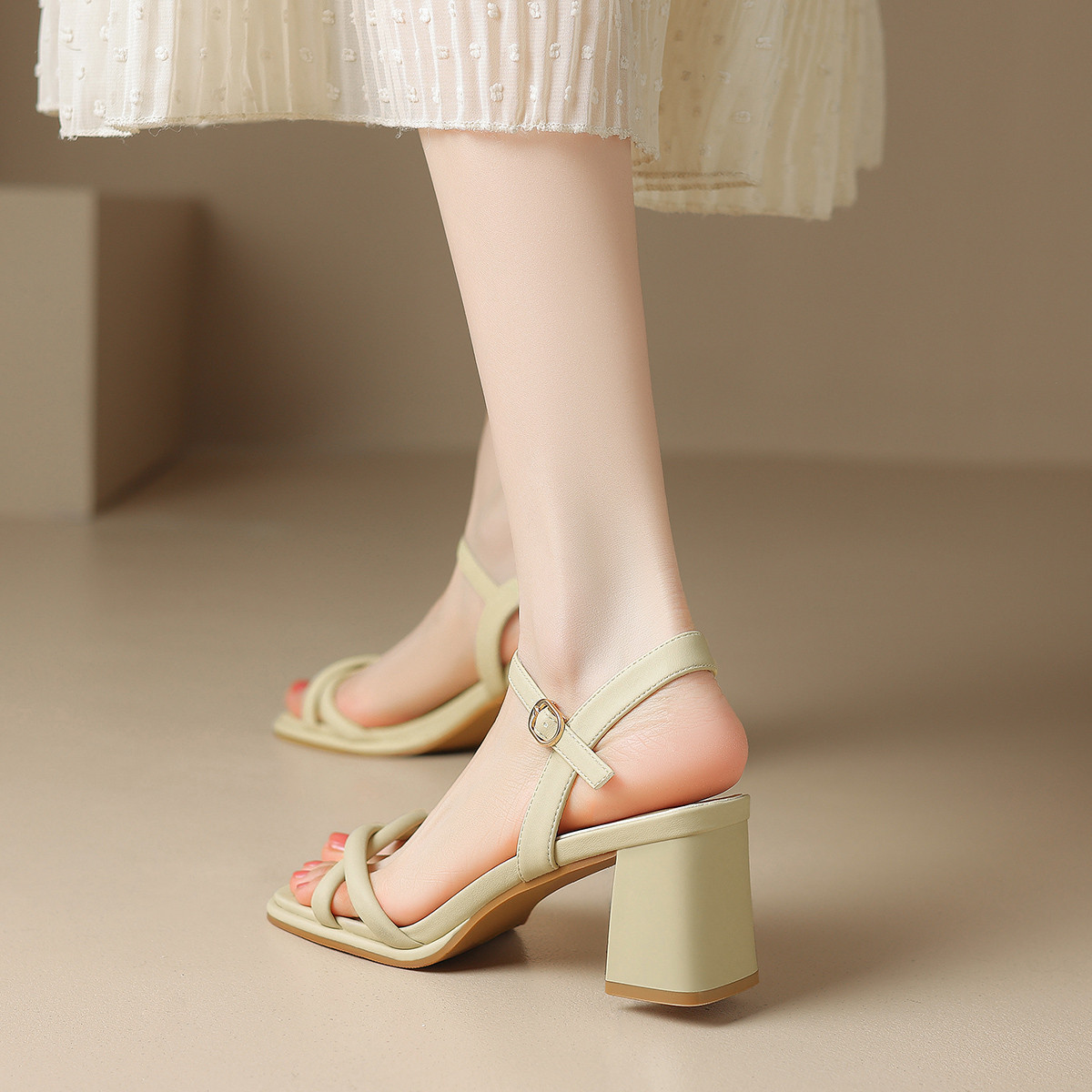【法式绕带】高级感百搭粗跟凉鞋一字带凉鞋女夏季高跟鞋女凉鞋女 646272