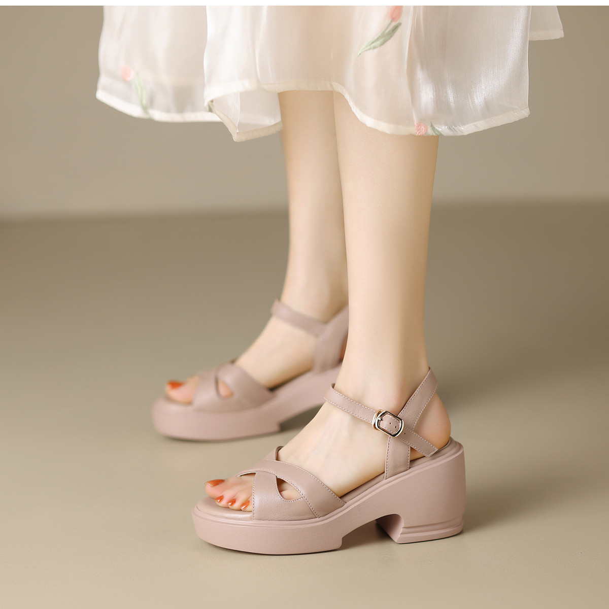 【厚底增高】粗跟凉鞋百搭女款凉鞋时装鞋罗马凉鞋外穿夏季女凉鞋 972608
