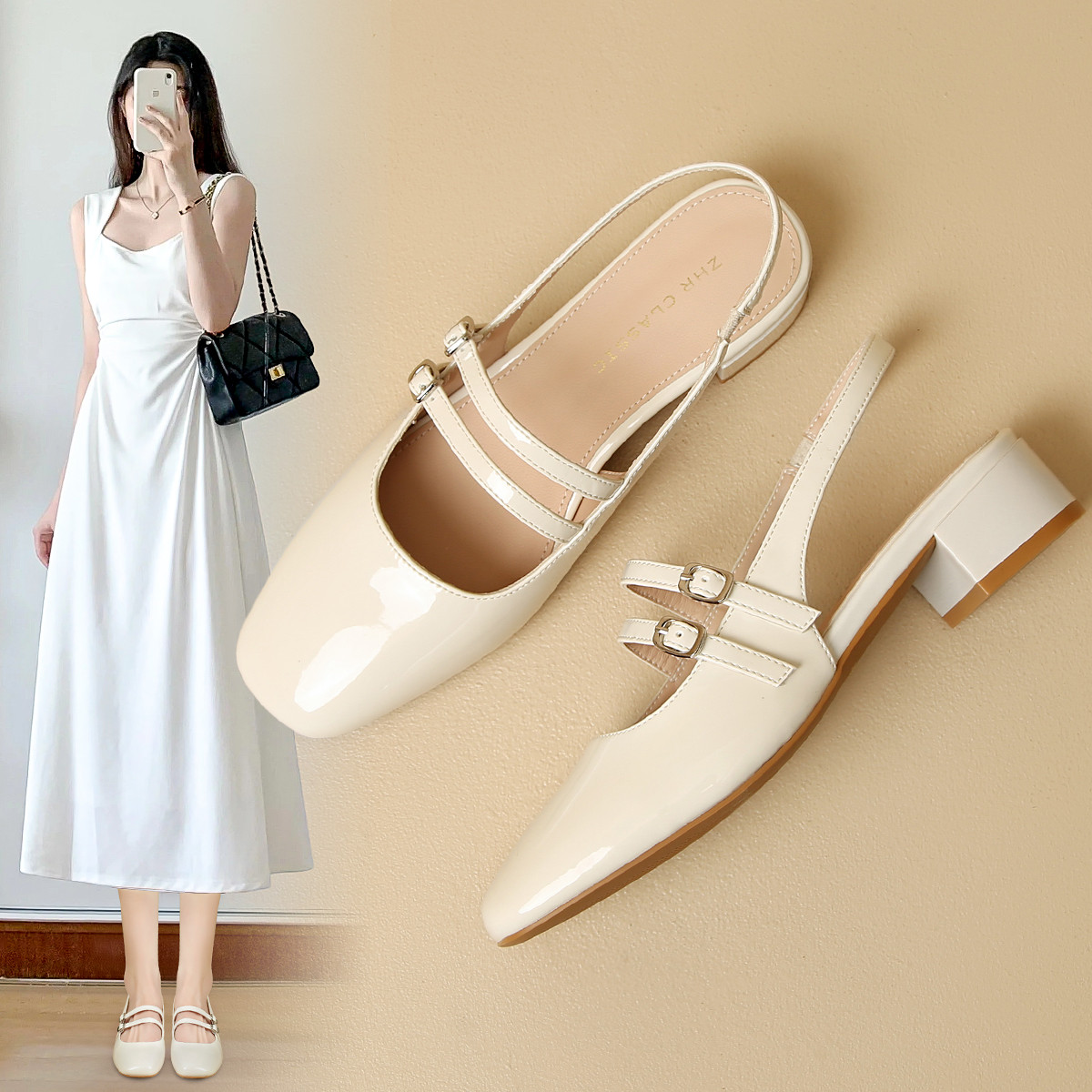 【金属扣饰】百搭方头粗跟凉鞋女包头凉鞋女士夏配裙子气质凉鞋女 769408