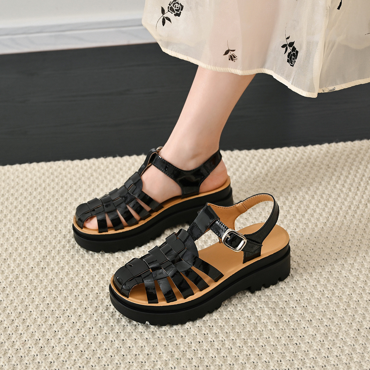 【秒高5.5CM】女士凉鞋厚底凉鞋包头凉鞋罗马凉鞋夏季女凉鞋 850752