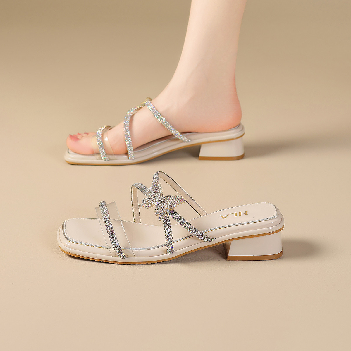 【气质百搭】夏季爆款一字带女凉鞋配裙子女士水晶时尚高跟鞋 298903