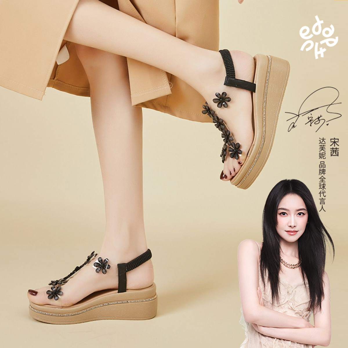 【热卖爆款】夏季舒适一字带凉鞋女夏外穿仙女风软底舒适坡跟女鞋 960151