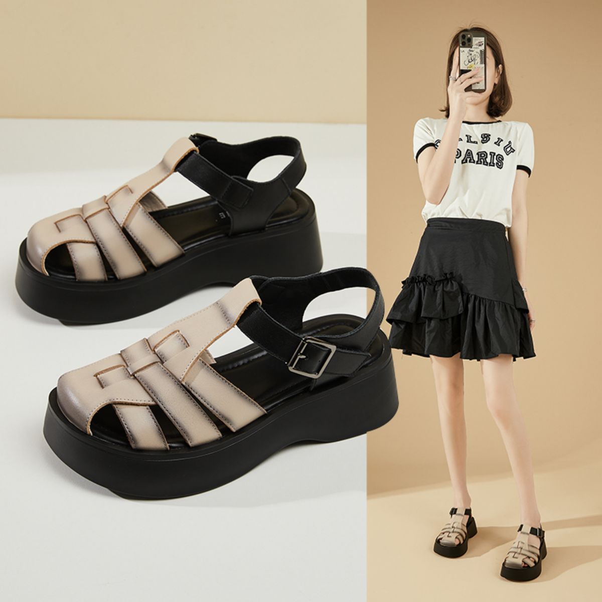 【秒增5CM】夏季编织包头凉鞋女罗马凉鞋百搭猪笼鞋运动女凉鞋 552023