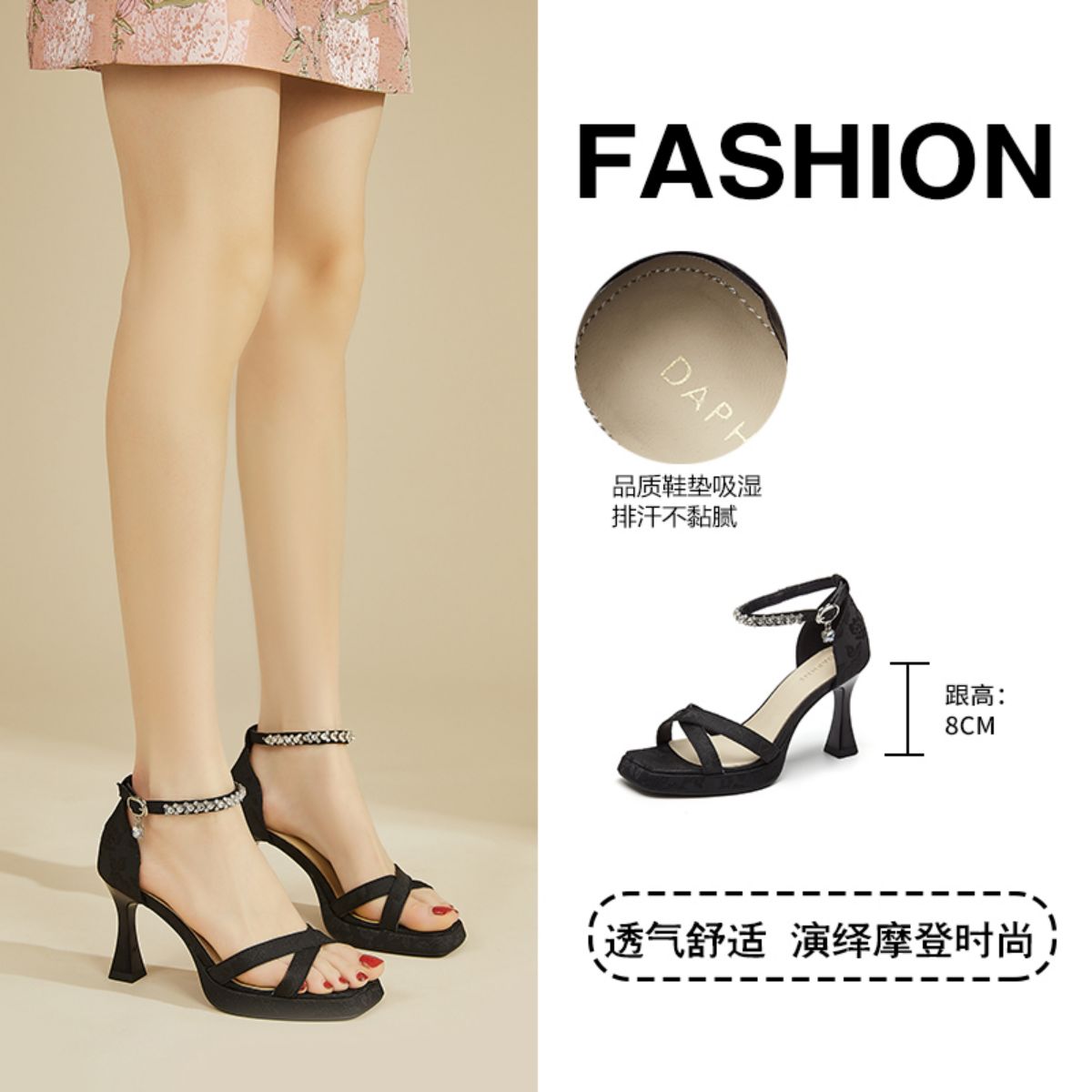 【秒增8CM】夏季一字带国风高跟鞋水钻露趾防水台细跟凉鞋女 213975
