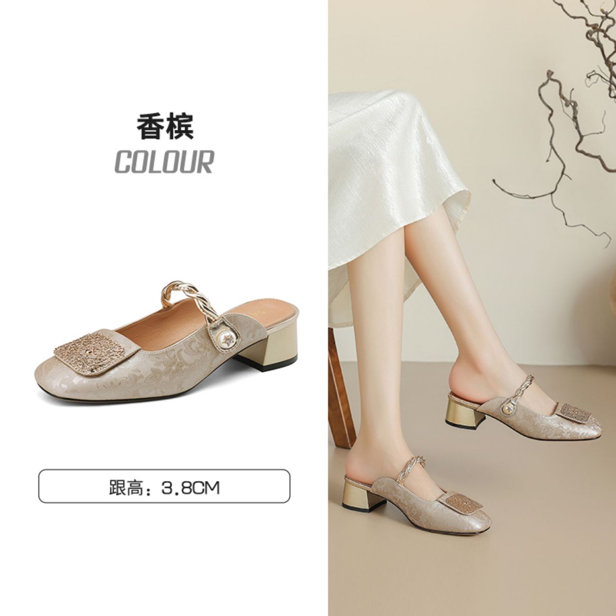 夏季新中式国风穆勒鞋女外穿拖鞋轻便一脚蹬粗跟通勤鞋时尚女单鞋 362135