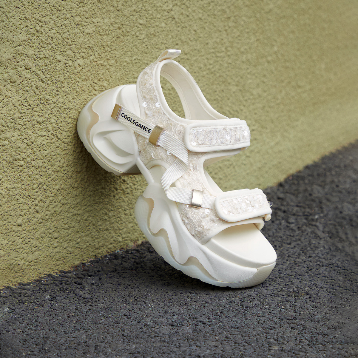 【厚底增高】爆款夏季运动凉鞋女厚底沙滩凉鞋亮片一字带凉拖鞋 189975