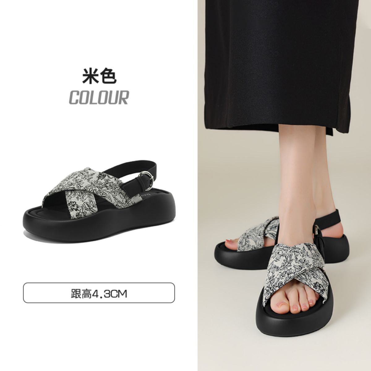 【气质纹理】百搭休闲女凉鞋厚底凉鞋夏季一字带凉鞋女轻便女凉鞋 912576