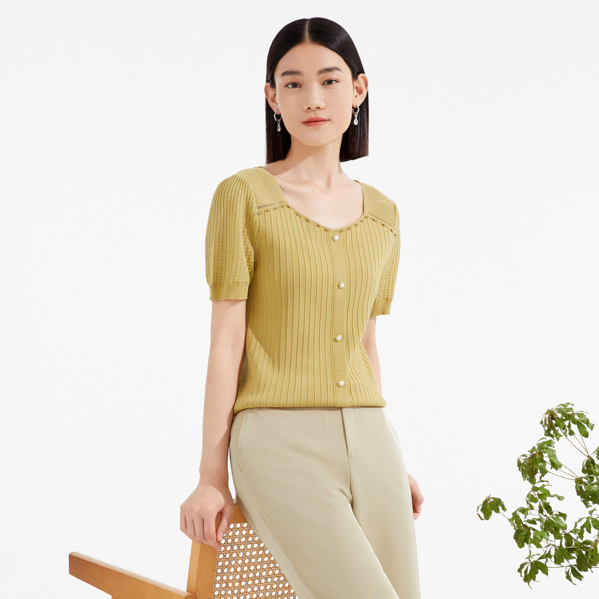 JZ玖姿商场同款法式方领针织衫女装夏季上衣JWCX31216 486284