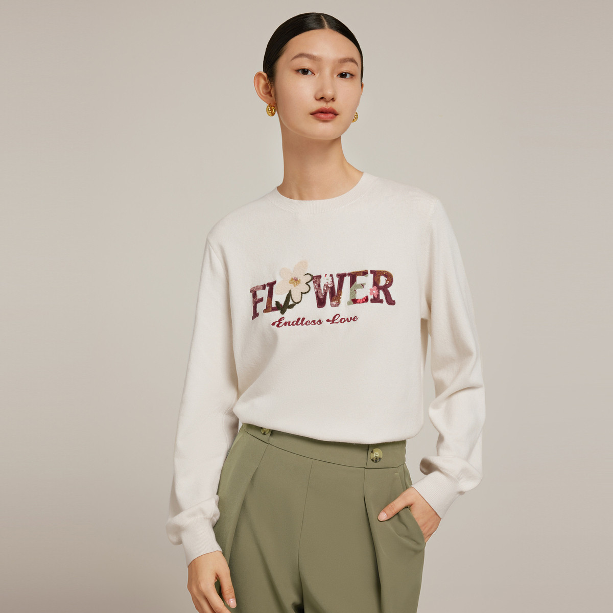 JZ玖姿花卉艺术重工冬季洋气珠片打底羊毛针织衫 526220