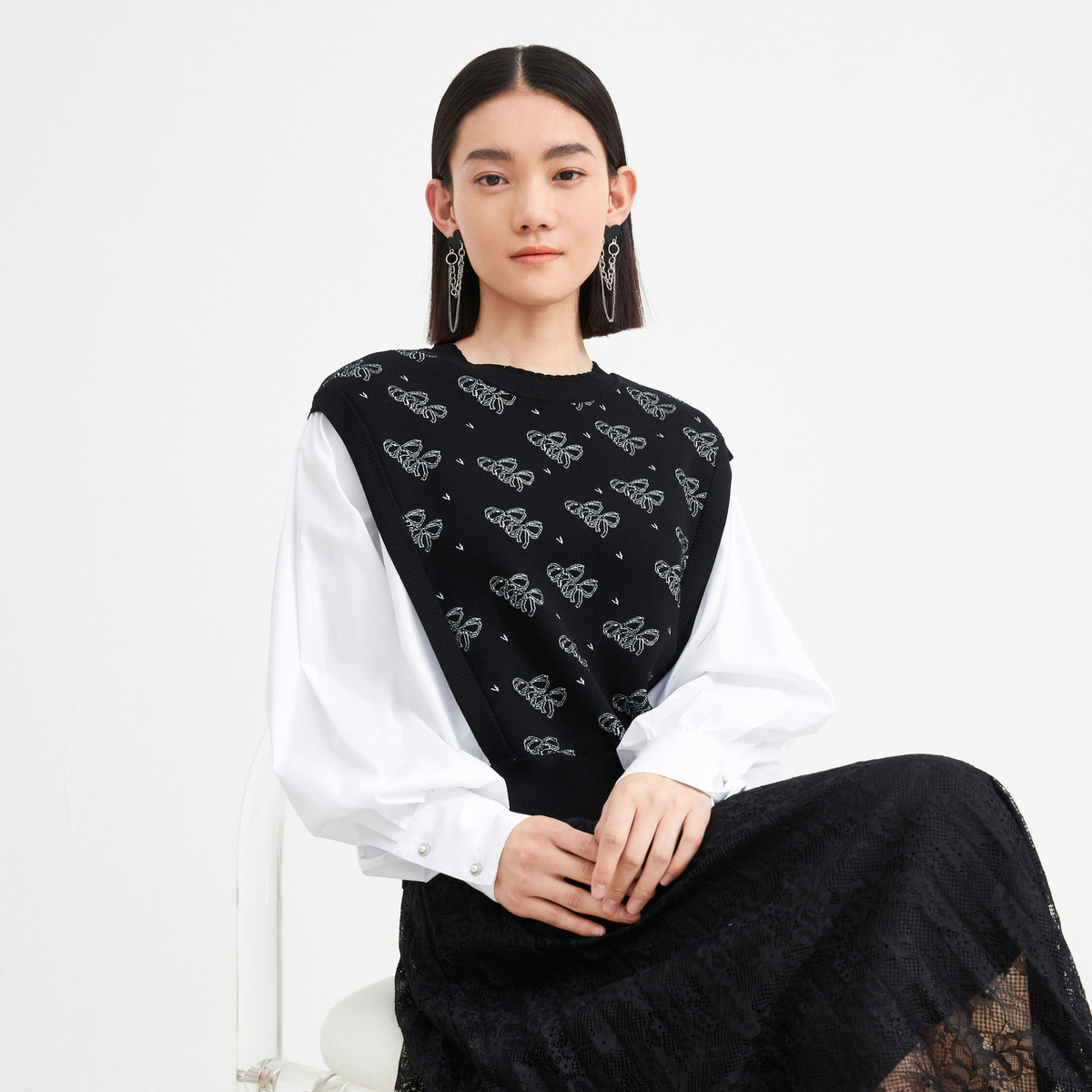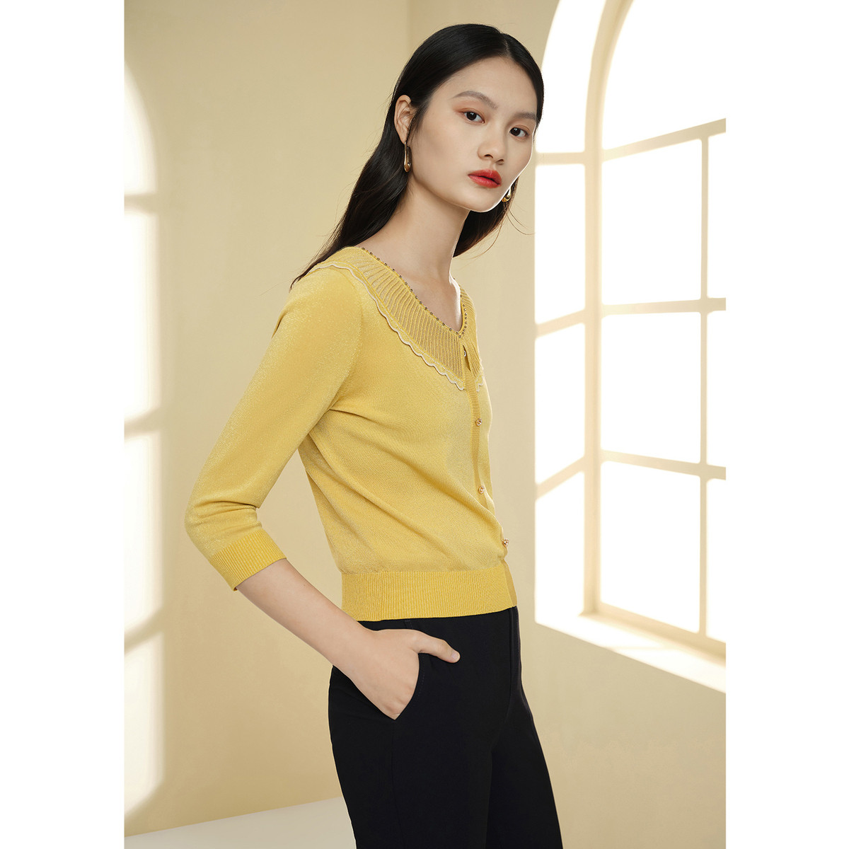 花边翻领针织衫女装春季简约时尚上衣商场同款 196236