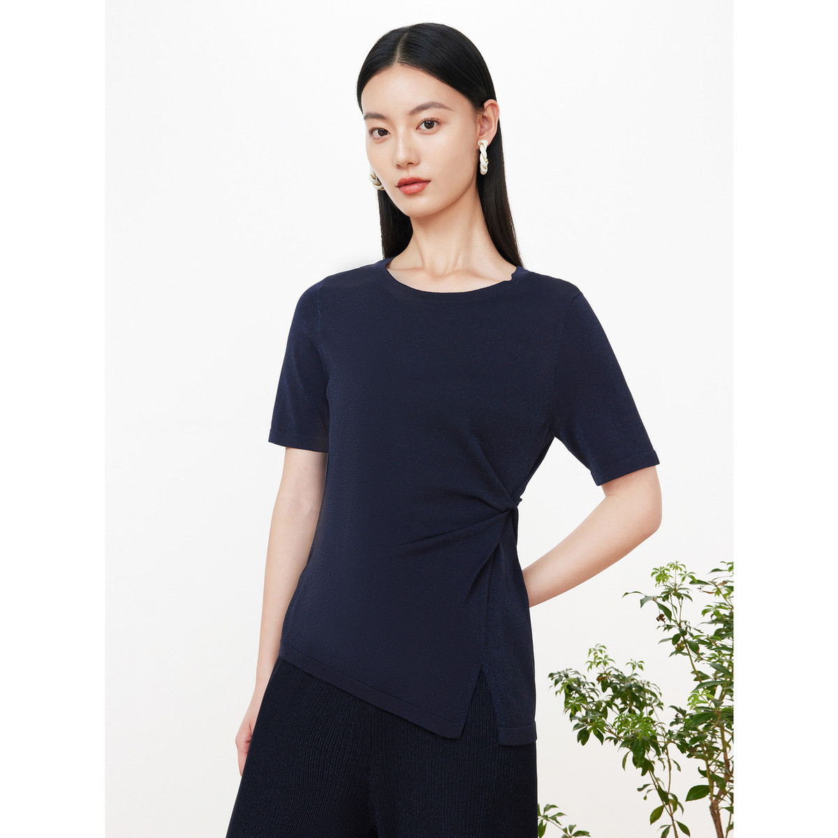 JZ玖姿商场同款不规则小众针织夏季短袖上衣JWCX31206 874828