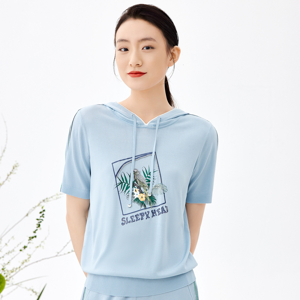 JZ玖姿拉链女装夏季时尚轻薄休闲帽款针织开衫 499532
