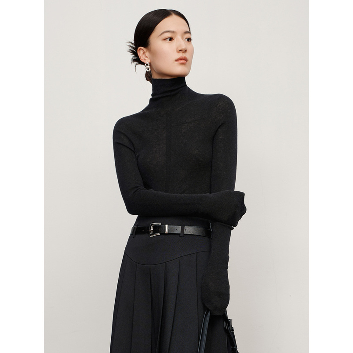 玖姿旗下安娜蔻系列无缝羊绒混纺高领长袖薄款针织衫女冬季 994892