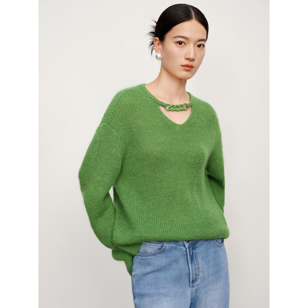 玖姿旗下安娜蔻系列多巴胺落肩袖宽松长袖套头针织衫女冬季 583116