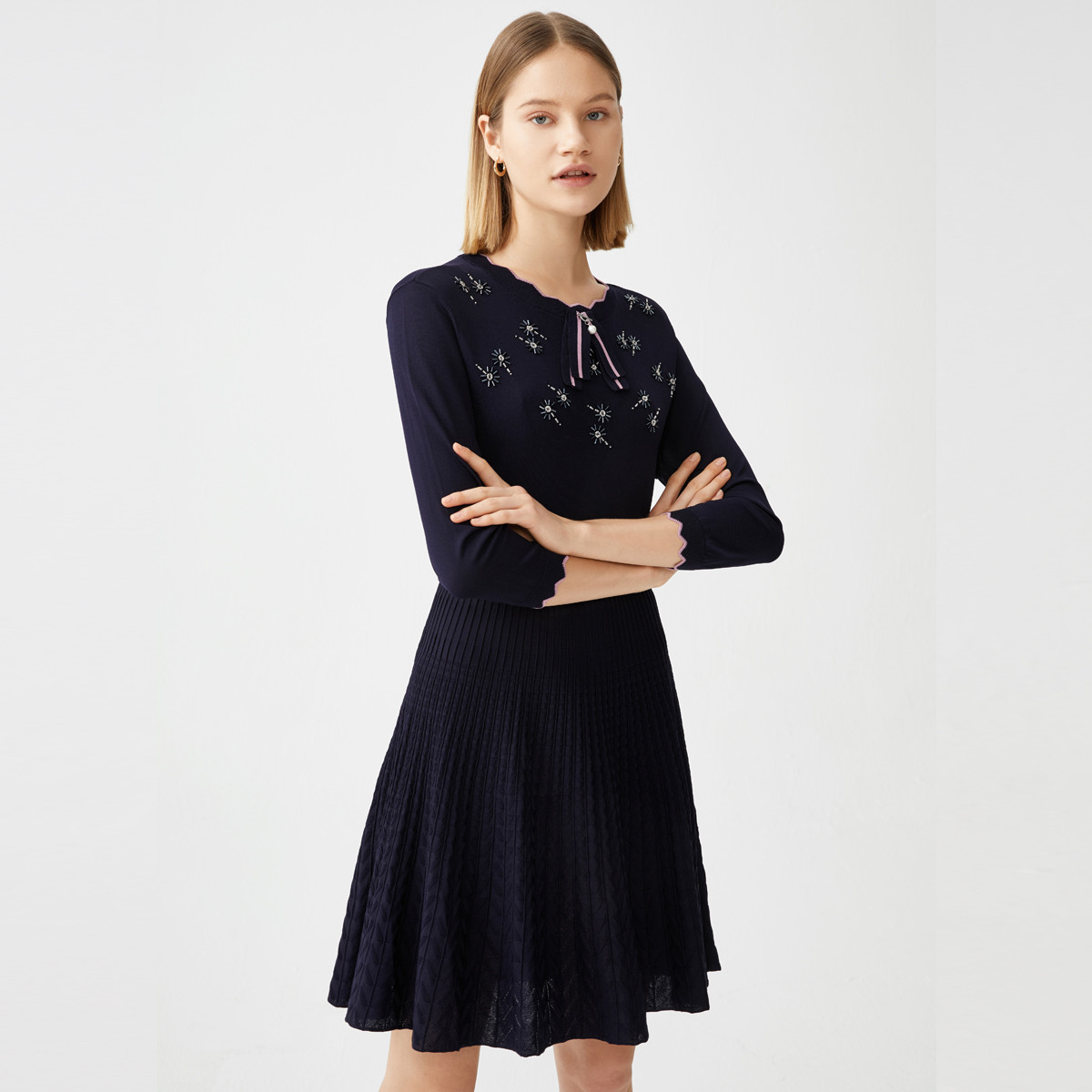 JZ玖姿爱心提花曲珠针织衫女装秋季四叶草小众设计感上衣 062028
