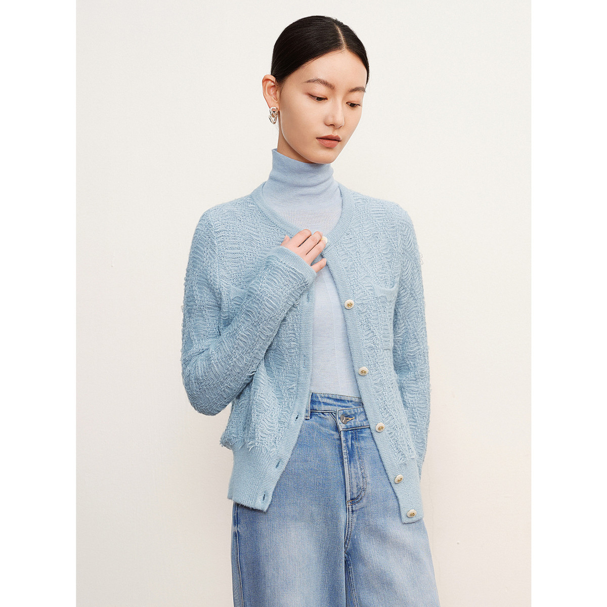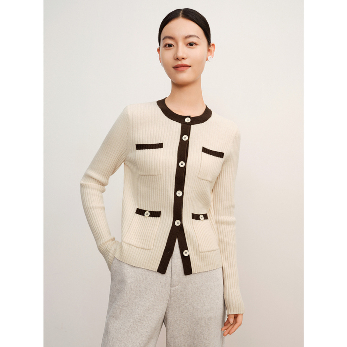 玖姿旗下安娜蔻系列圆领优雅通勤小香风羊毛针织开衫女冬季 110860