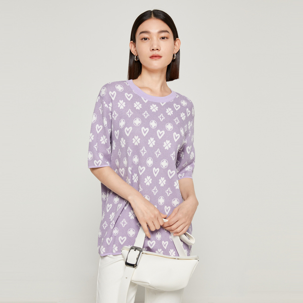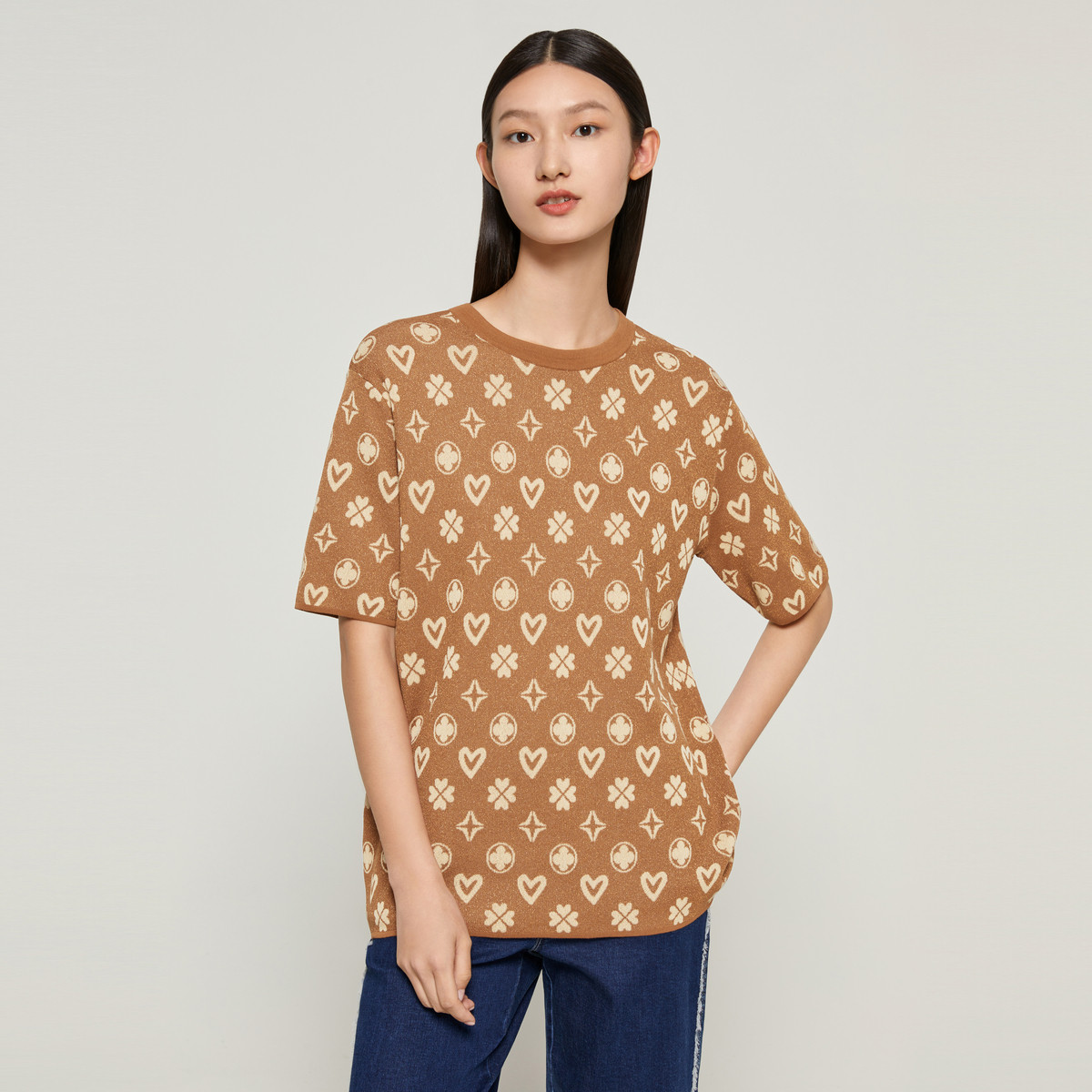 JZ玖姿爱心提花曲珠针织衫女装秋季四叶草小众设计感上衣 912972