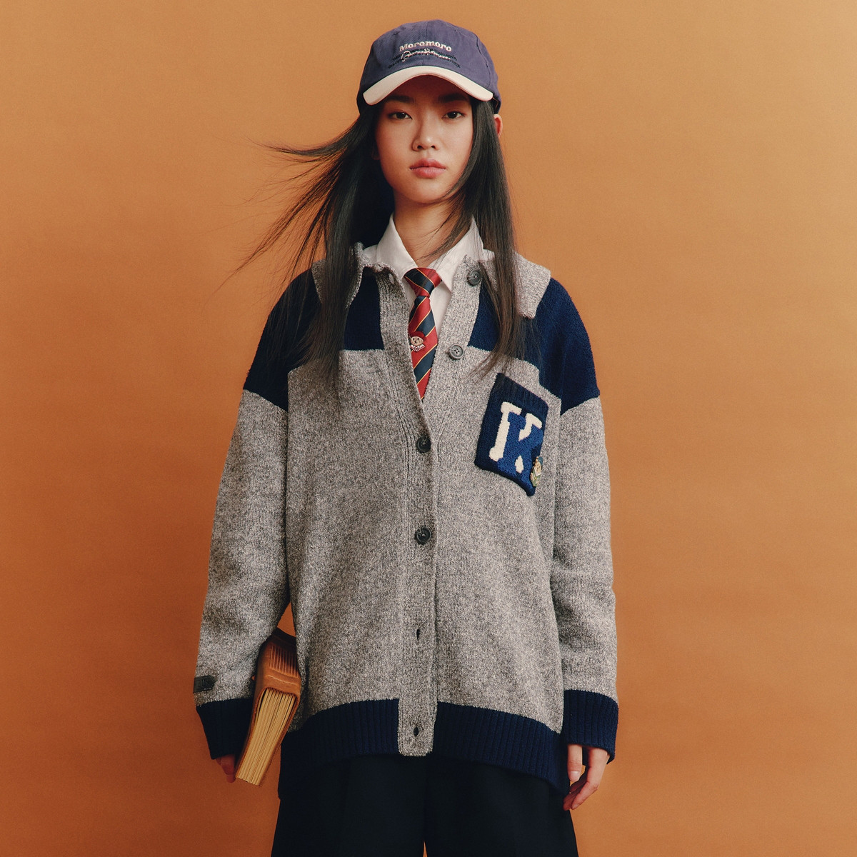 【纯色开衫】针织衫女开衫长袖坑条简约格雷灰韩系 195473