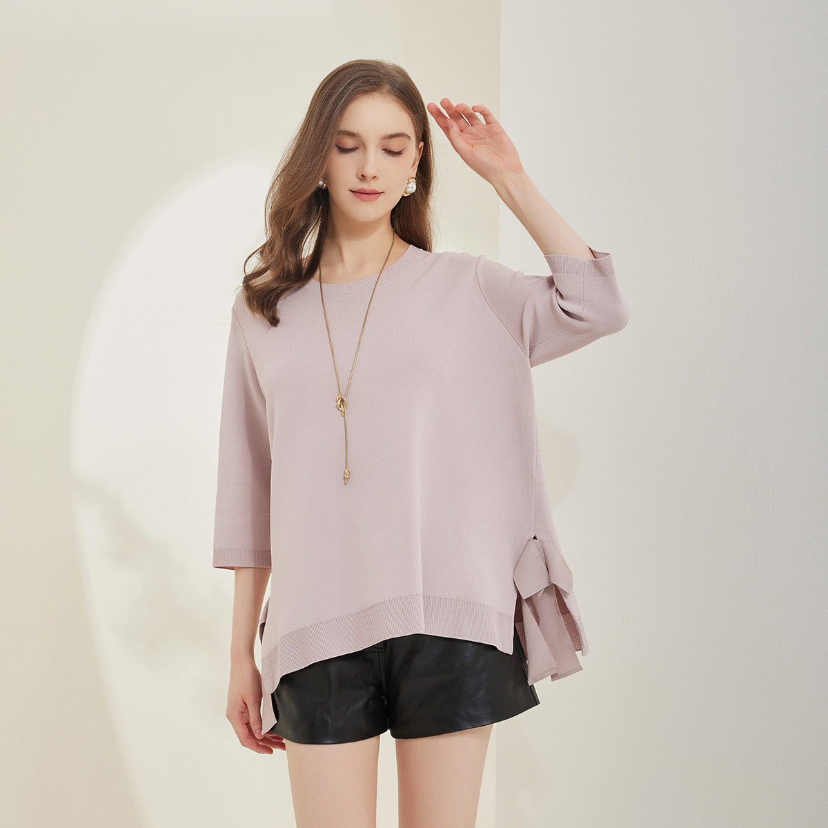 PORTSPURE 宝姿春夏女装缝制优雅舒适显瘦针织长袖上衣 466570