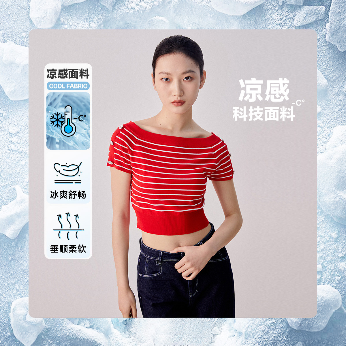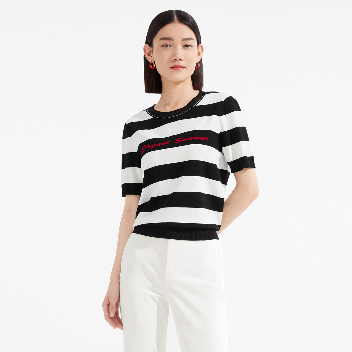【海军风】修身短款条纹百搭航凉感短袖针织衫 630353