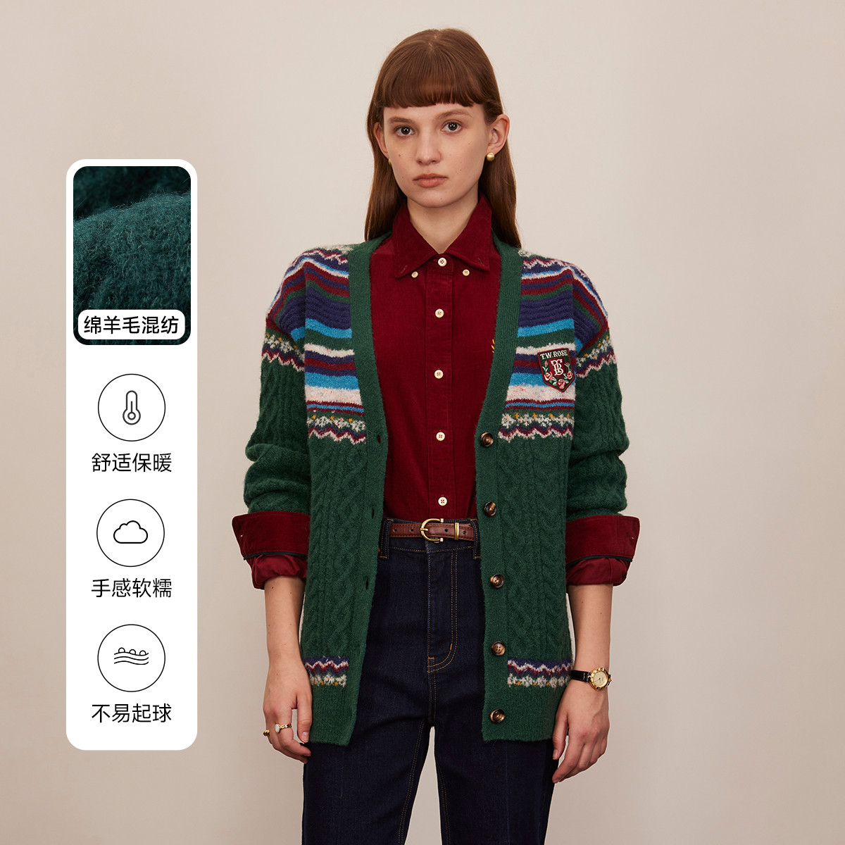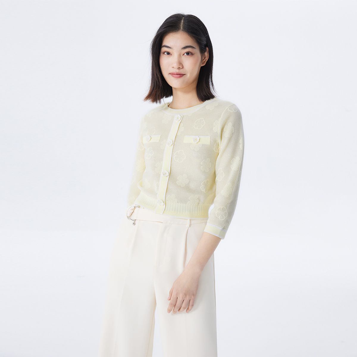 [满花小开衫]日常通勤款修身长袖女式针织衫百搭休闲 930719