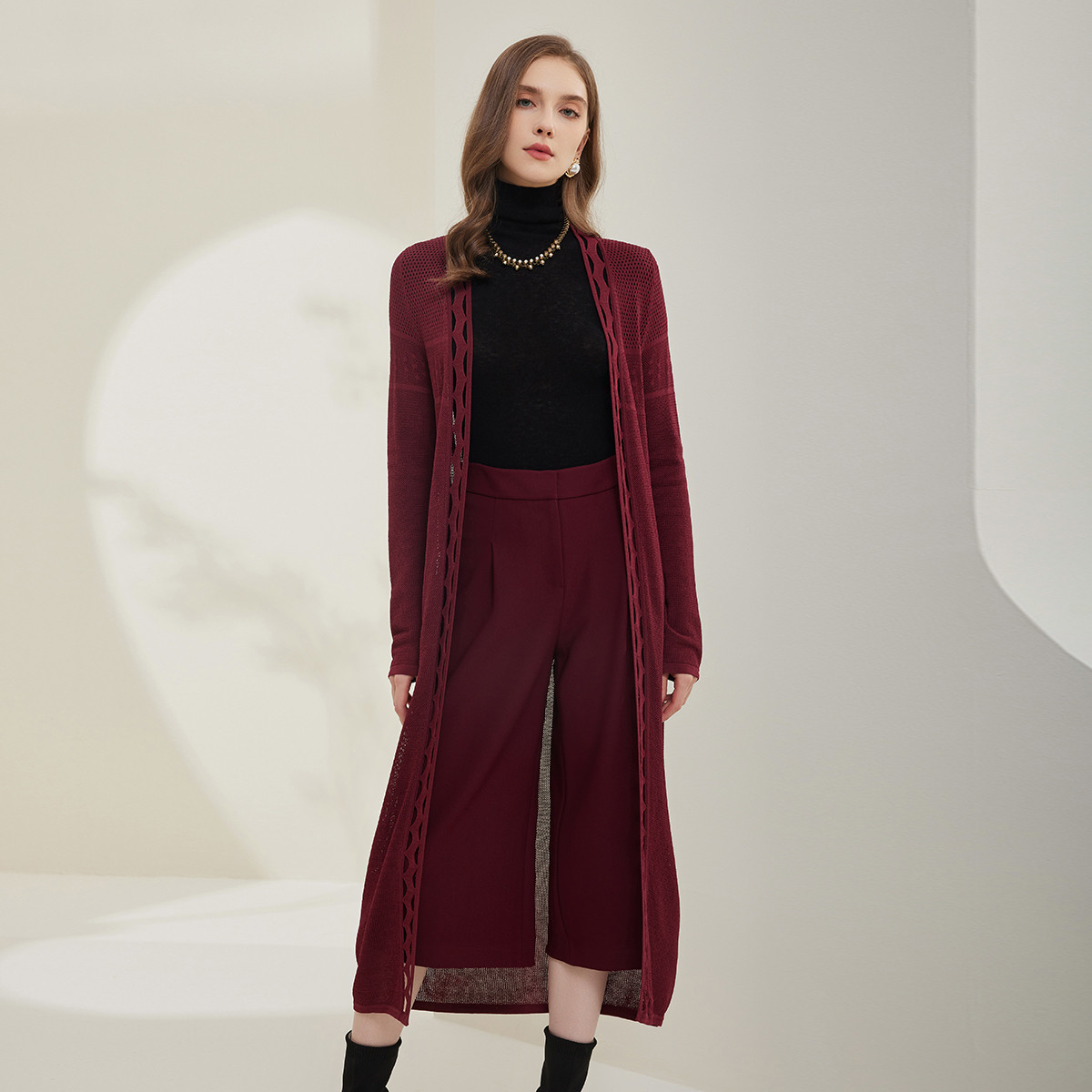 【时尚镂空设计】长款轻薄针织外套上衣女式针织开衫 571871