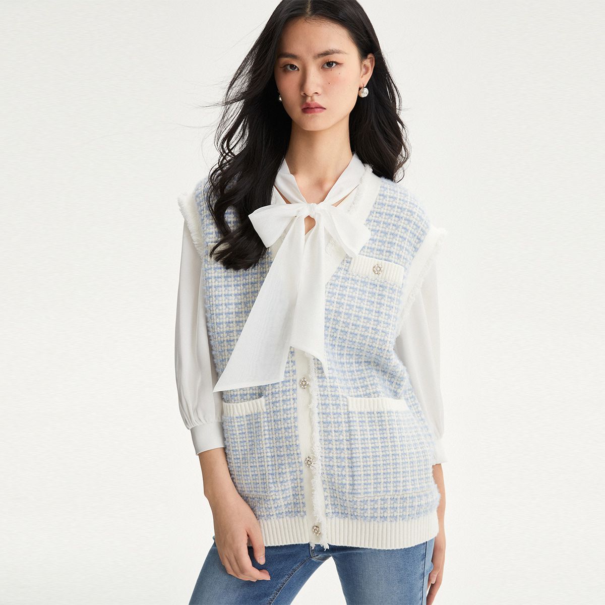 【小香风针织马甲】春夏宽松无袖毛边V领背心女气质百搭时尚 109137