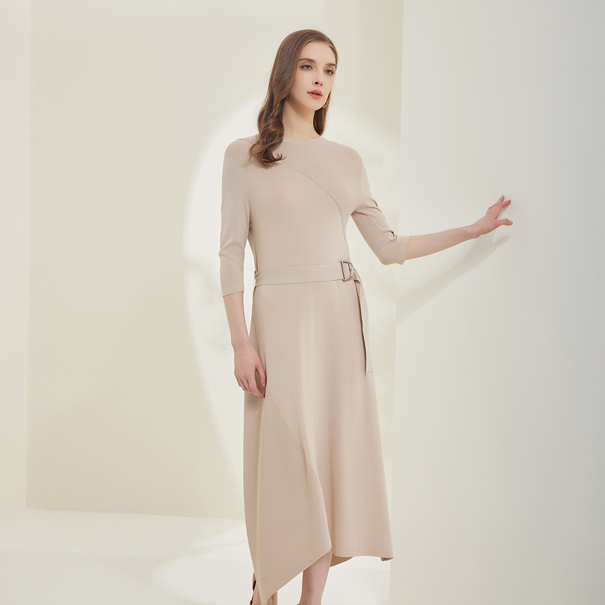 气质时尚简约大方纯色收腰显瘦连衣裙女式针织裙 604639