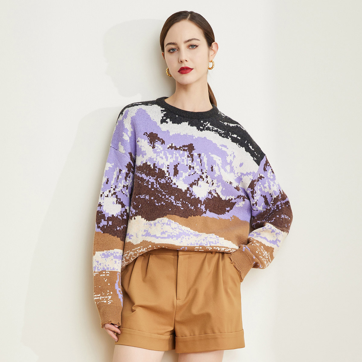 [大廓型]春秋季节时尚简约宽松休闲款上衣女式针织衫 989663