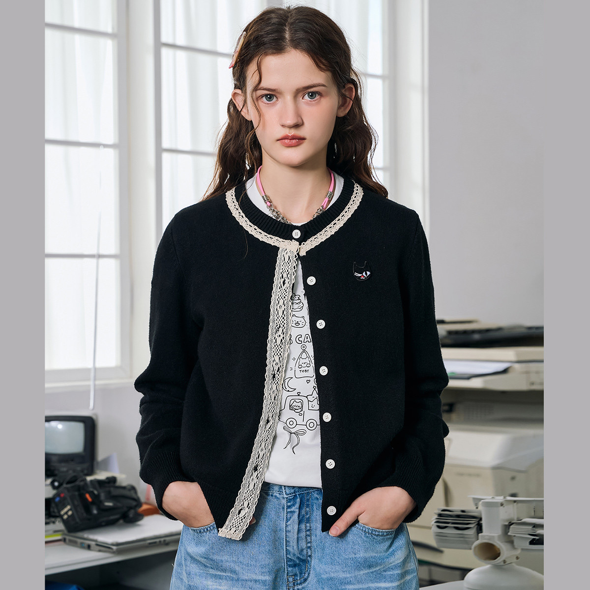 【小香风蕾丝】韩版2025早春花边针织开衫毛衣女式针织衫 116317