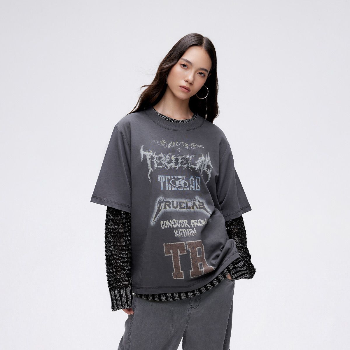 【两件套多种搭配】春季字母印花圆领套装针织衫女 208666
