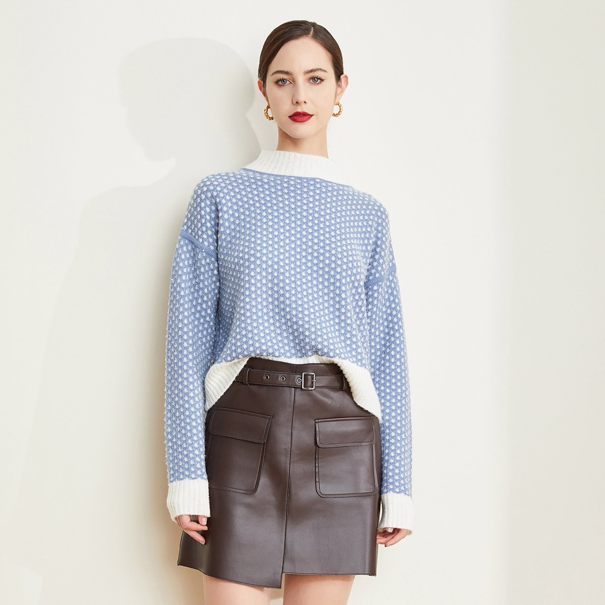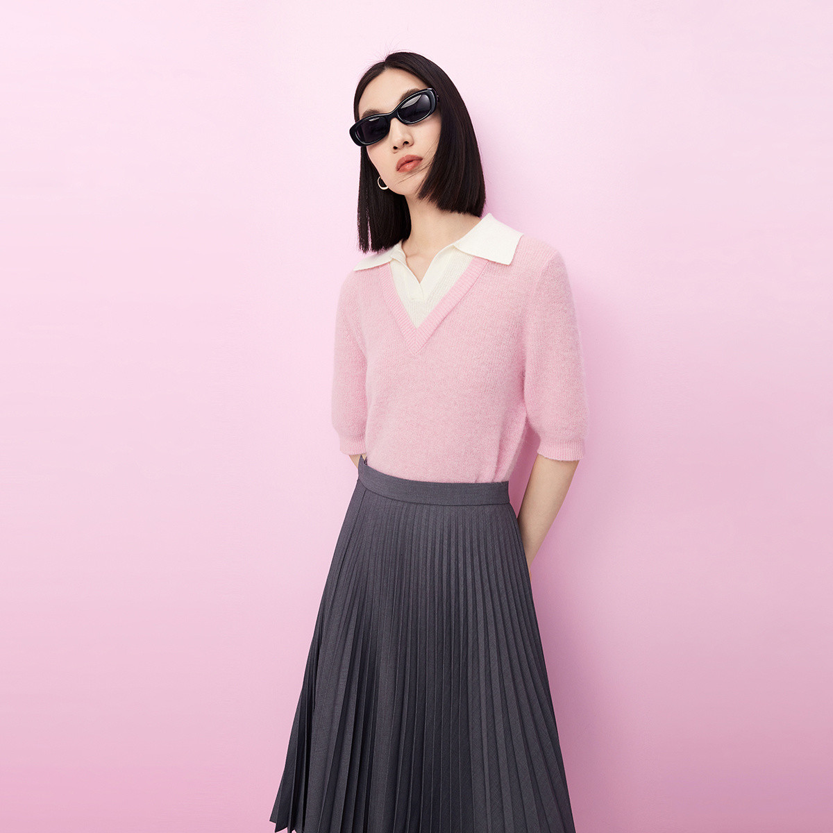 【薄荷曼波】针织衫女春季柔软羊驼毛复古polo领显瘦针织衫 152731