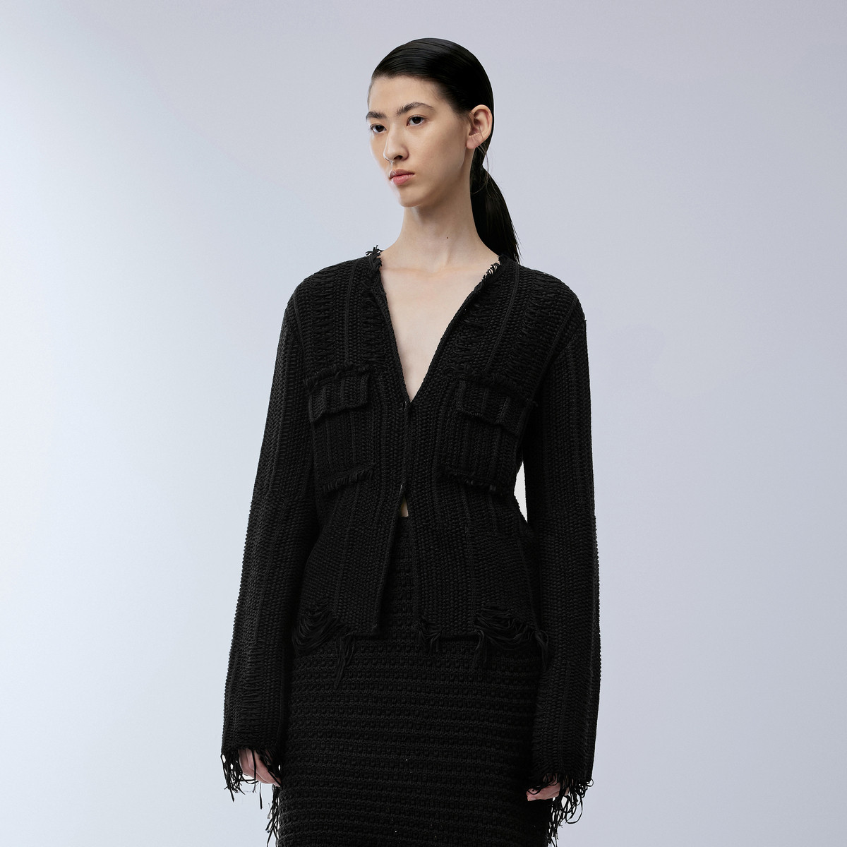 【2024秋季】时尚个性不对称设计感针织开衫修身显瘦毛衣女 746964