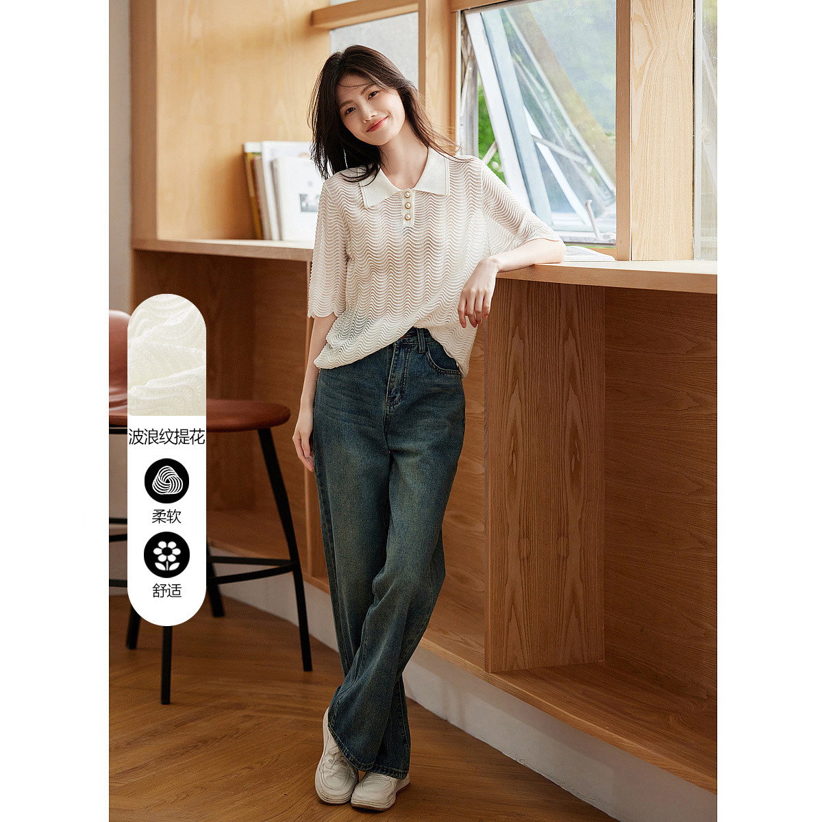 【纸片人线衫】夏翻领短袖清透爽气薄款短袖针织衫女上衣 640449