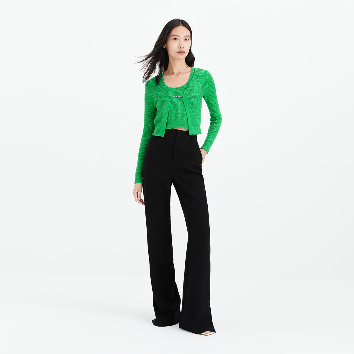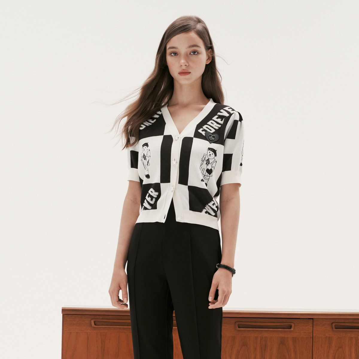 【商场同款】【薄荷曼波】春季法式复古U领修身短款针织开衫 737051