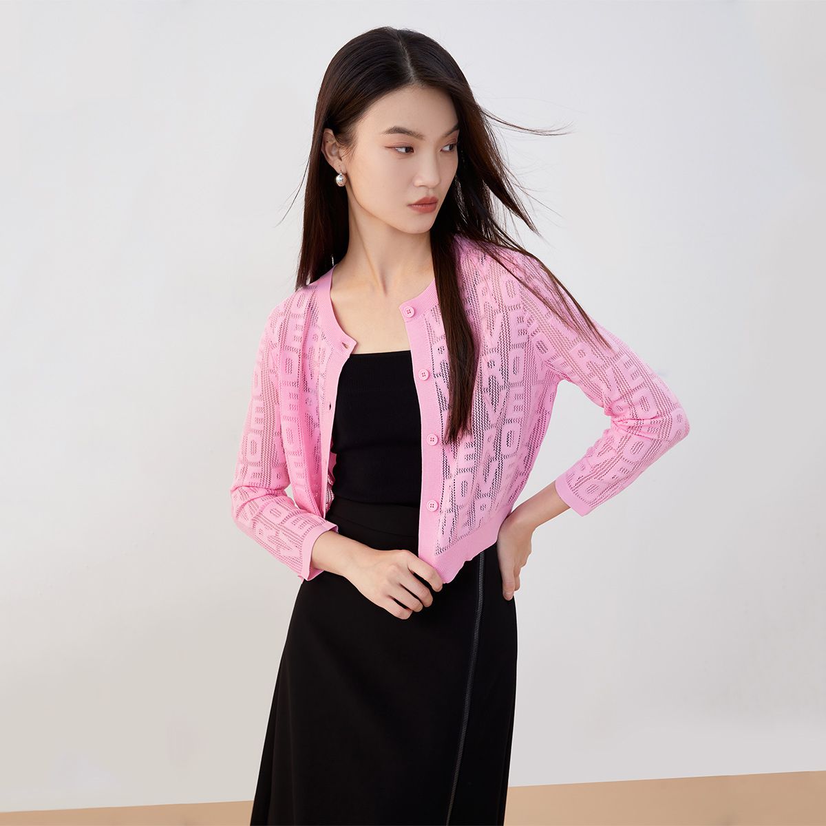 【多巴胺减龄】春夏七分袖直筒开衫字母针织衫气质百搭时尚 750225